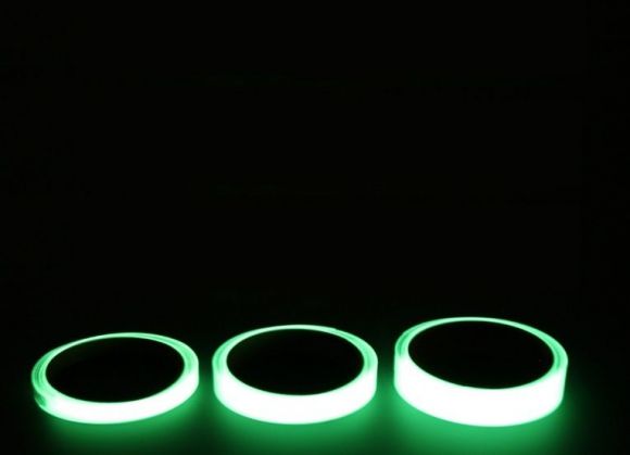(Fotos en total oscuridad) CINTA ADHESIVA DE SEGURIDAD y SEÑALIZACIÓN DECORATIVA Crema Verdoso día / Verde Noche. Cinta de 10 mm (1 cm) Alta devolución de luz